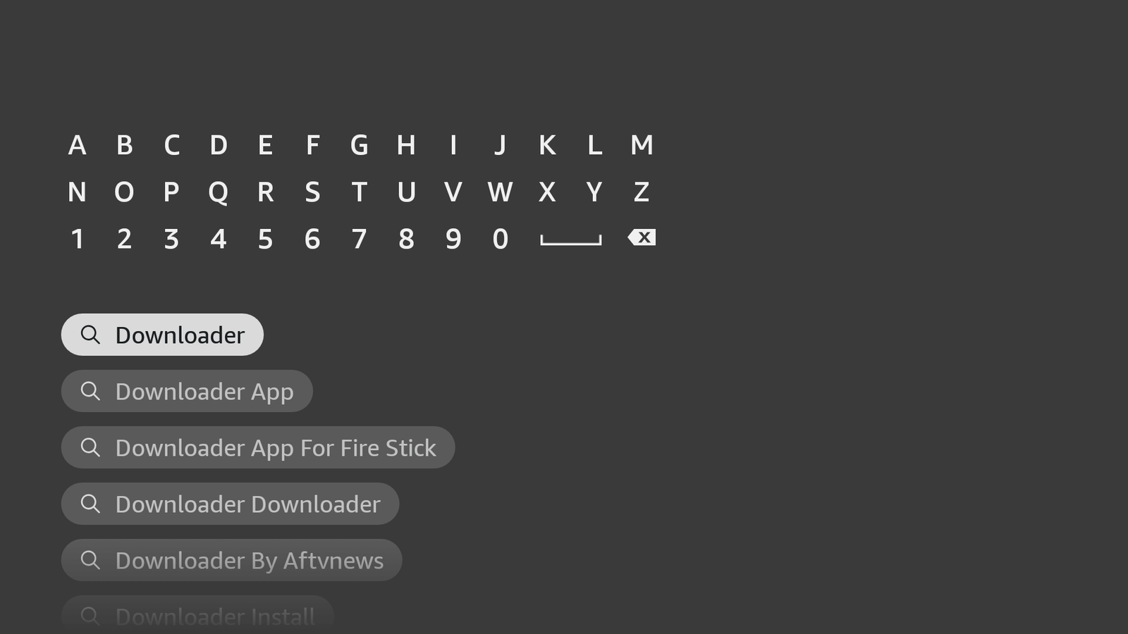 - Type the “Downloader” using the On–Screen keyboard.