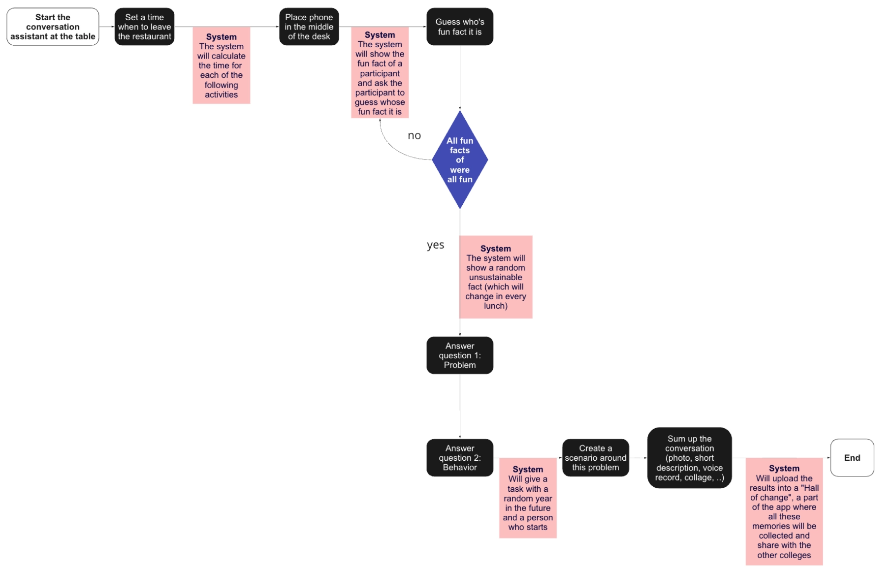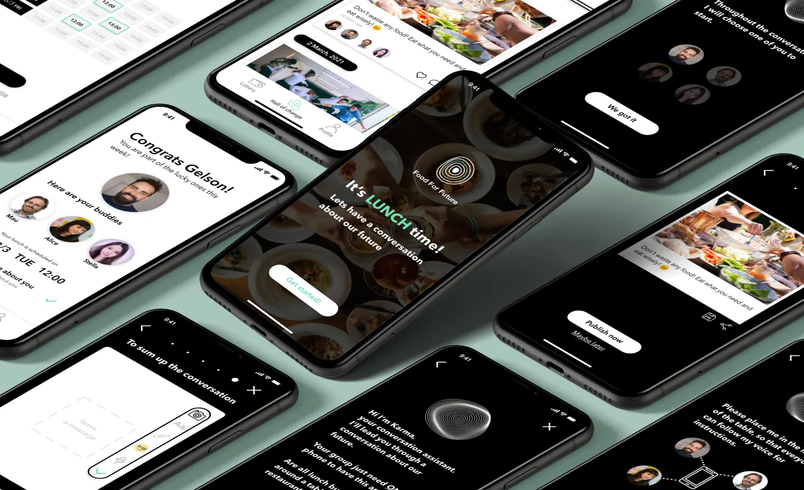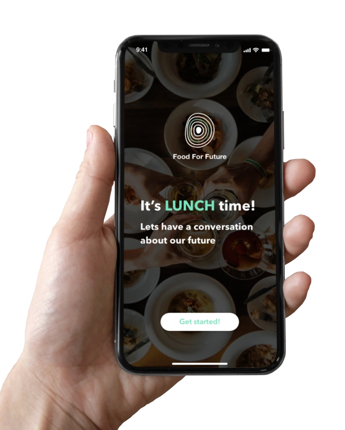 The Food For Future app addresses the challenge of fostering meaningful conversations around (un) sustainable futures on individual, social, and planetary levels. It utilises the Lunch Lottery concept to facilitate deep discussions among change-makers in their workplace and beyond. Participants engage in guided conversations on sustainability topics, supported by a digital assistant. The app encourages participants to share their dialogue on social media, aiming to extend the conversation and promote collective change.