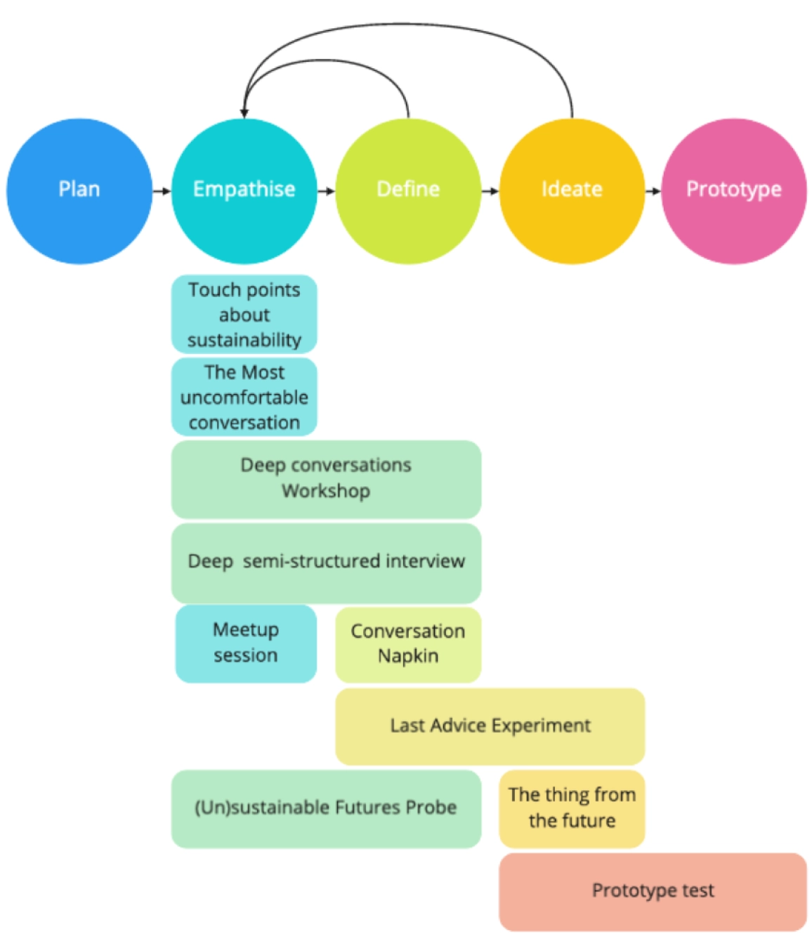 Due to time constraints and social distancing regulations, user participation in the design process was hindered. As we still valued user input and considered it fundamental for decision-making, we adapted their approach to involve users to the extent possible given the constraints. We chose to use methods that could be adapted to situation, for example by designing and holding digital workshops, phone interviews and sending cultural probes by email.