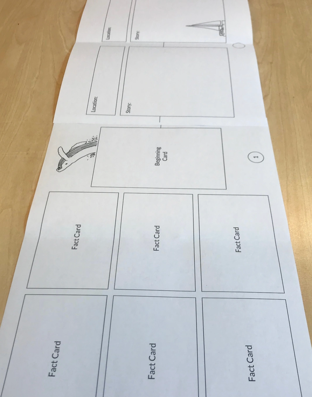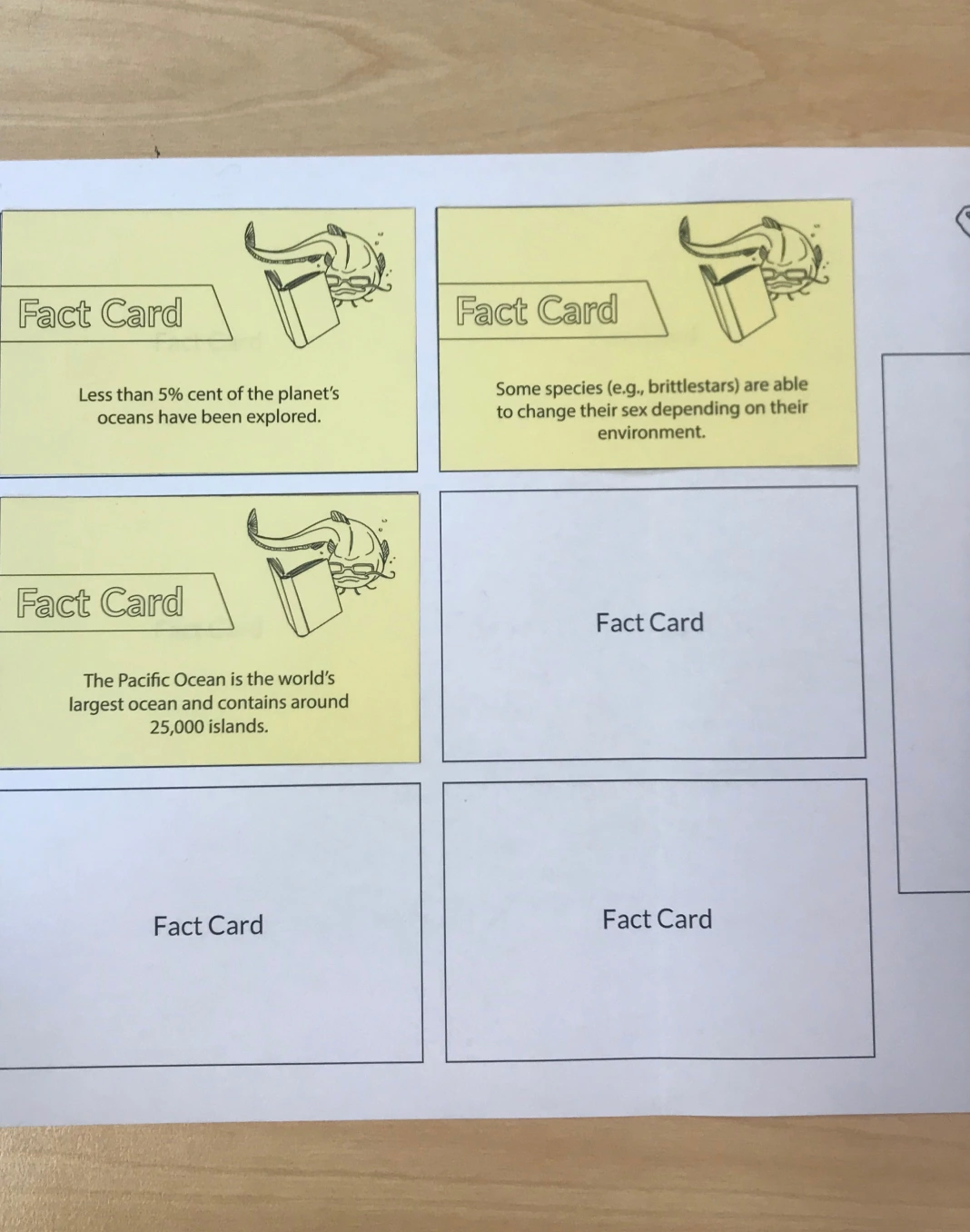 The information is accessed through a playful activity by collaboratively trying to unlock the full story. Participants discuss and test their knowledge on ocean literacy and get random clues or pieces of the story when correctly answer the questions. As final activity they connect the pieces and reflect on the characters’ journey, and ultimately on the marine socio-environmental local and global issues relate to it.